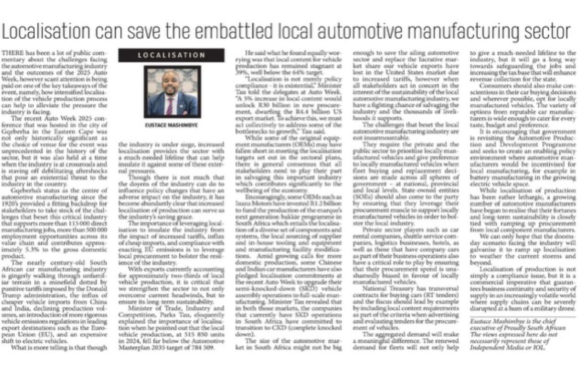 2025 has been an eventful year occasioned by increasingly uncertain global geopolitical developments. These unprecedented events in the international trade arena have reaffirmed the importance of supporting local industries and demonstrated that support for local companies, products and services is not only a patriotic act, but an existential one.